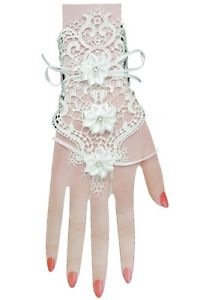 【送料無料】ブレスレット アクセサリ— ホワイトレースグローブブレスレットcute women white lace silk tie hand glove bracelet wedding jewelry flower bridal