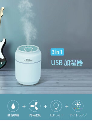 【USB扇風機+LEDライト+ナイトランプ】3in1 USB加湿器 大容量 卓上加湿器 ミニ加湿器 ペットボトル 携帯式加湿器 車載 マイクロミスト 手入れ簡単 潤い 節電 省エネ 自動オフ オフィス 家庭用 デスク おしゃれ 可愛い 送料無料