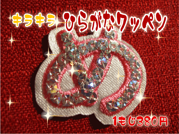 キラキラひらがなワッペン【ネコポスOK】【刺繍】【文字】【スパンコール】【ファンシー】